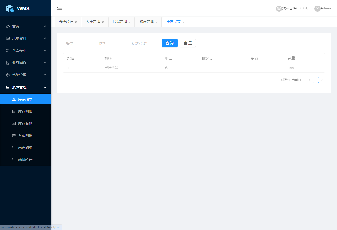 系统支持仓库精细化管理,条码或RFID均可支持,出入库记录以及数据查询,所有基础数据支持excel导入,平台可独立部署,也可直接使用,支持PDA手持终端设备接入,二次开发对接各管理平台